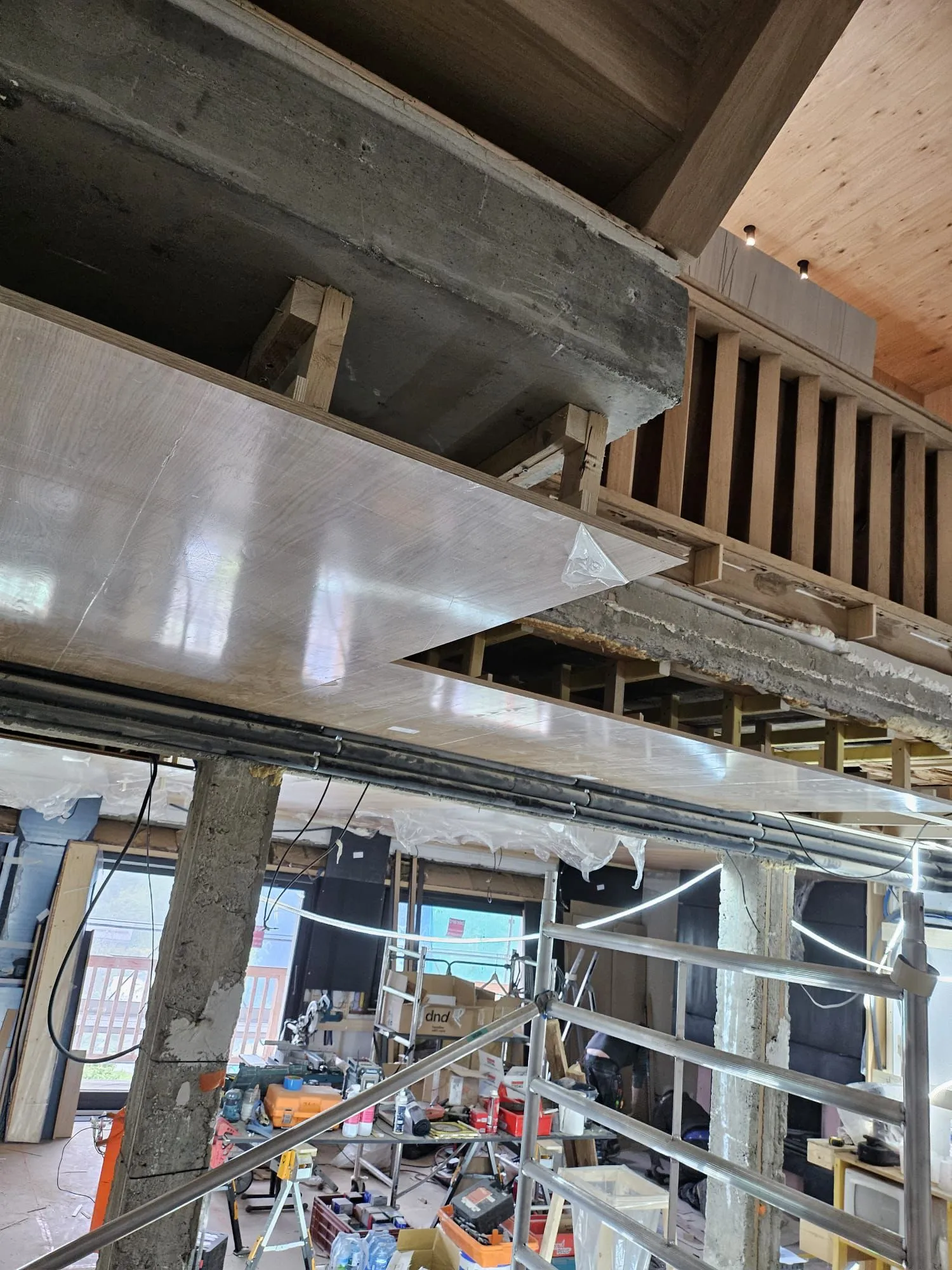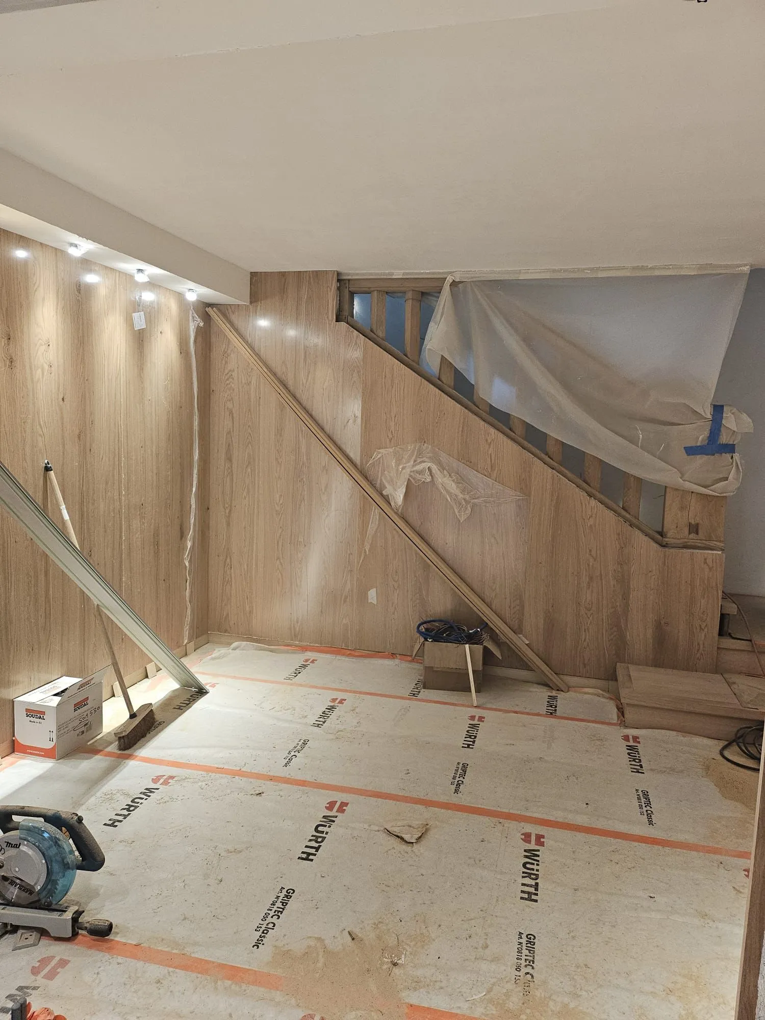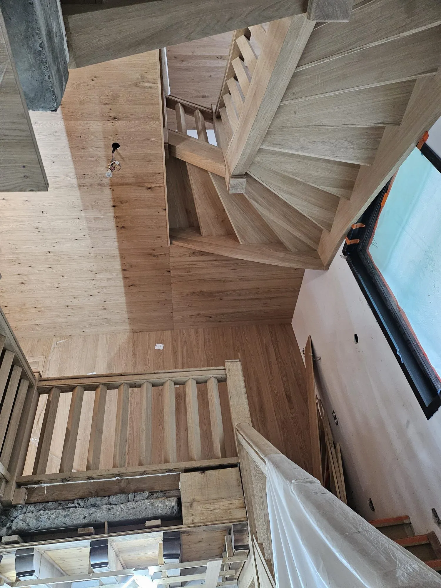 À Megève, MK Menuiserie a été sollicité pour un projet d’envergure : habiller intégralement l’intérieur d’un chalet de quatre étages avec un bardage en bois. Ce type de finition apporte une atmosphère chaleureuse et authentique, tout en mettant en valeur l’architecture montagnarde typique de la région.