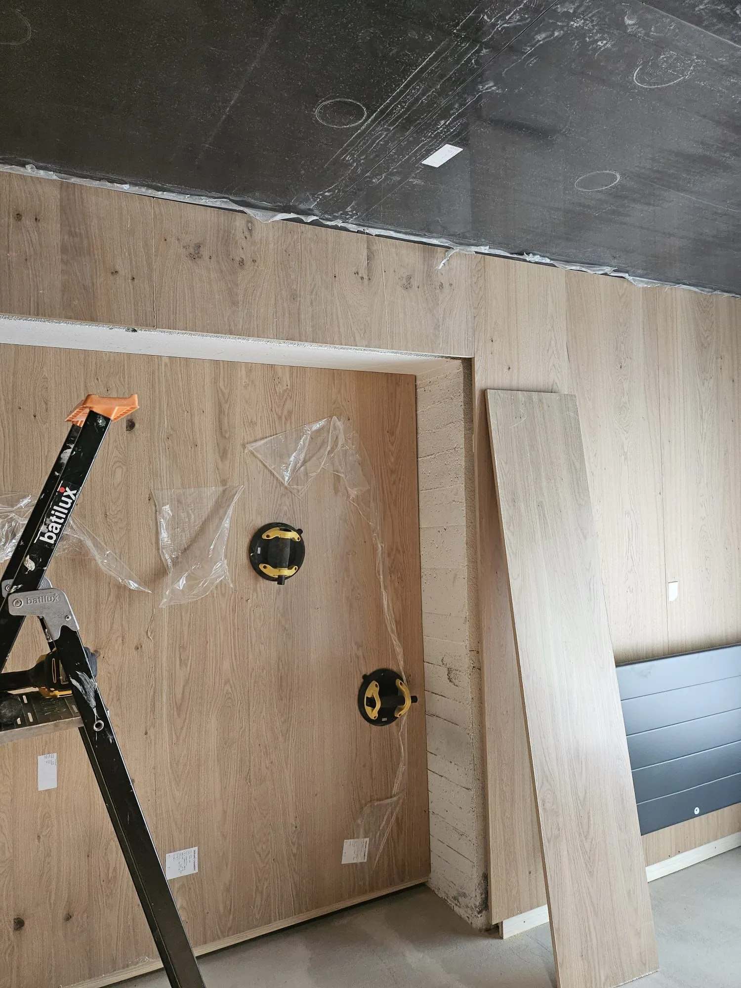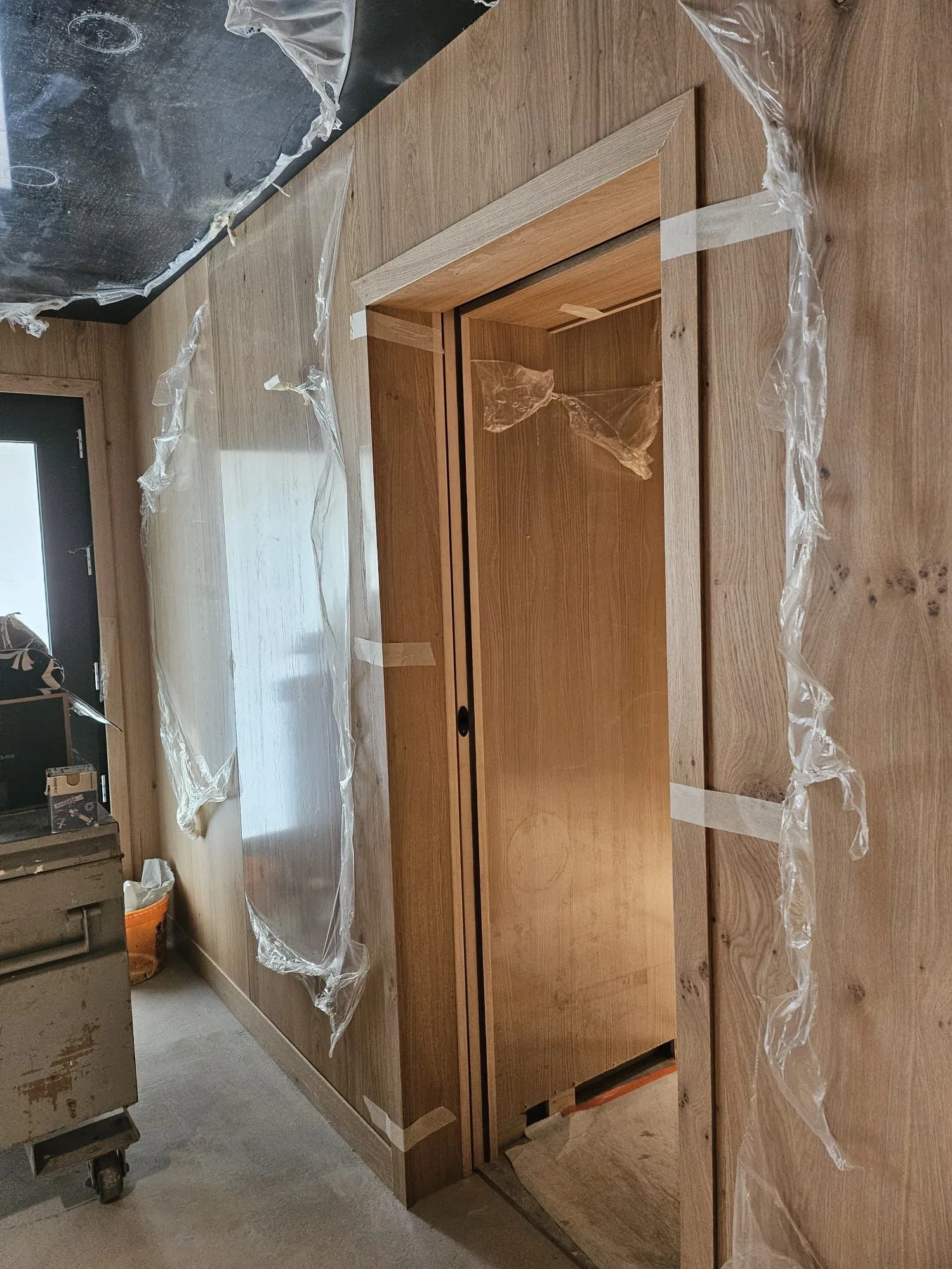 Les ouvertures (portes et fenêtres) ont été intégrées harmonieusement au bardage, avec des découpes précises et des finitions soignées. Des éléments techniques tels que les prises électriques, interrupteurs et luminaires ont été parfaitement adaptés pour respecter l’unité visuelle de l’espace.